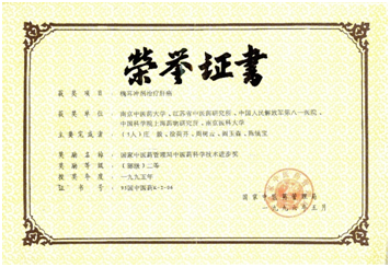 1995年槐耳冲剂治疗肝癌的研究,获国家中医药管理局科技进步二等奖