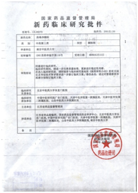 2001年6 获得临床研究批件,批件号:2001ZL130