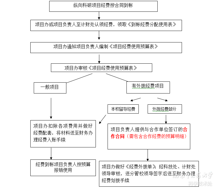 纵向科研经费是指由项目主管部门向我校拨付的科研经费,本流程适用于纵向项目经费下达的情况