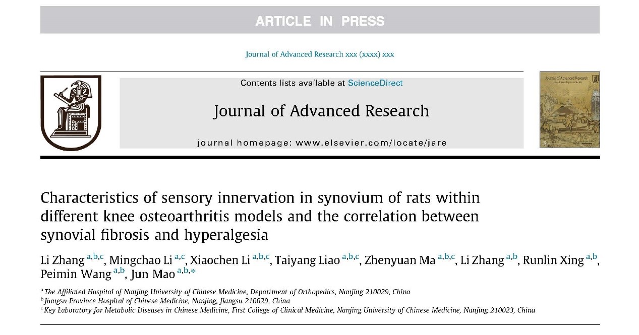 附属医院王培民科研团队一直致力于中医药防治KOA基础与临床研究。上述研究为KOA疼痛相关动物模型的选择、关节疼痛与僵硬的相关性提供了基础研究的客观证据,也为KOA疼痛的深入研究提供了新思路。