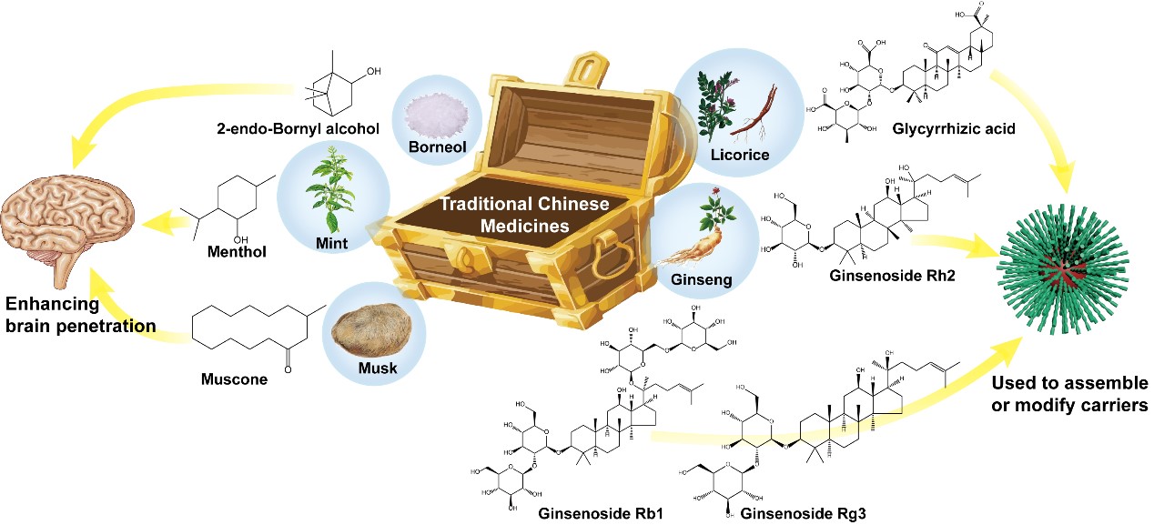 Fig2.The unique contribution of some active ingredients of TCM to brain drug delivery.