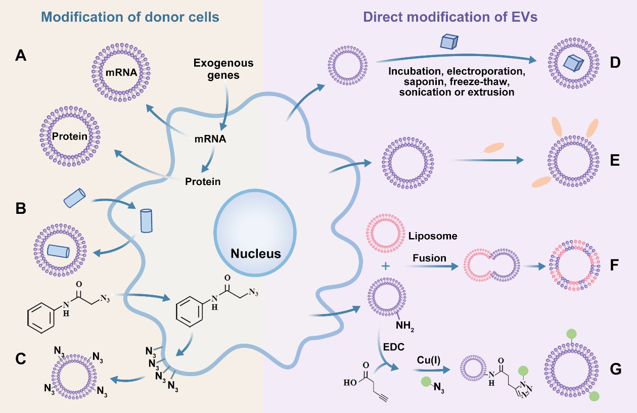 细胞外囊泡(EVs)是纳米级的天然衍生囊泡,包含多种反映其细胞来源的生物活性分子。这些携带特定信息的纳米囊泡具有天然的跨越BBB的能力和优异的生物相容性,被认为是脑疾病治疗和药物递送的智能载体主要候选者,为从生物标志物到治疗剂及递送载体的多种不同临床应用提供了新策略。团队以课题组研究方向出发,以“Emerging prospects of extracellular vesicles for brain disease theranostics”为题发表于Journal of Controlled Release上,概述了EVs的特性和用于EVs有效药物荷载及修饰的策略和方法。聚焦于EVs在脑疾病中的诊断治疗应用,分析了当前研究的挑战和障碍,并进一步讨论了EVs成功临床转化的前景(Fig.3)。