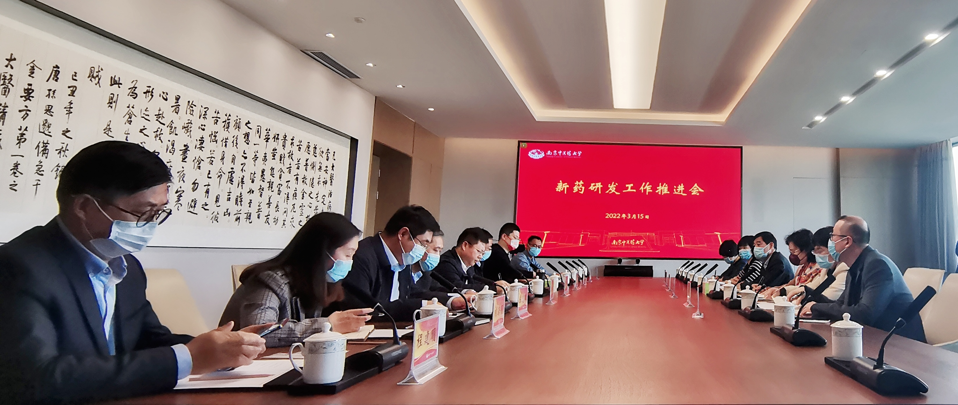 3月15日下午,我校在仙林校区行政楼316会议室召开新药研发工作推进会。校党委常委、副校长程海波,校第三临床医学院、附属中西医结合医院院长王佩娟、副院长方志军,科学技术处处长陈军、科学技术处副处长陈志鹏、张永文研究员、新药研发团队等参加会议。会议由陈志鹏副处长主持。