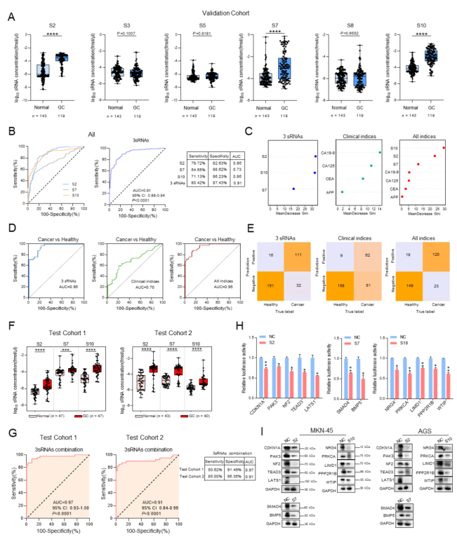 麻彤辉教授团队利用克服RNA修饰干扰的PANDORA-seq全景测序技术,首次在血浆外泌体中系统分析了两类非经典小RNA——rsRNA和tsRNA的分子图谱。研究发现,由3种rs/tsRNA组成的分子组合在早期胃癌中表现出优异诊断效能。机制研究显示,这些rs/tsRNA通过调控ErbB/Hippo信号通路参与胃癌进展,为诊断标志物提供了理论依据和潜在治疗靶点。本研究首次建立了基于外泌体来源的非经典sncRNAs的胃癌早期诊断模型,为液体活检提供了新思路。
