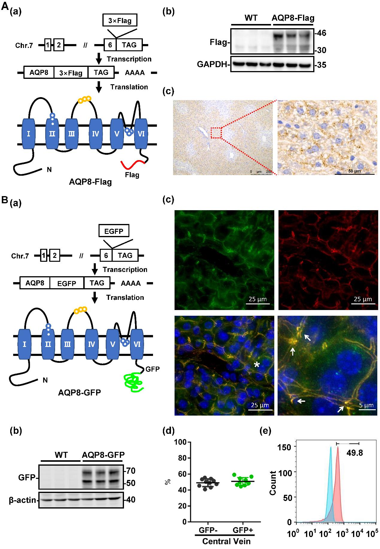 研究中,作者建立了AQP8-GFP和AQP8-3xflag敲入小鼠模型,直接观察AQP8在小鼠肝脏中的分布特征,首次发现AQP8在约50%的肝小叶毛细胆管和紧密连接处高表达,提示AQP8表达可能受自主神经系统调控,并且在胆汁分泌过程中跨细胞和细胞间两条水转运途径中均发挥重要作用。同时,作者还建立了AQP8基因全敲和肝细胞特异性敲除小鼠模型,以评估AQP8对小鼠胆汁流动的影响,并评估AQP8在胆固醇胆结石形成中的作用。研究结果充分证明,肝细胞AQP8在小鼠肝胆汁形成过程中通过介导高效水转运促进胆汁稀释,从而减轻胆结石的形成。中药小分子干预提示肝细胞AQP8有希望成为胆结石治疗的新药物靶点。调节肝脏水运输可能为各种类型的胆结石疾病,提供一种普适性的治疗策略。